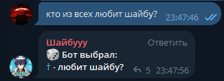 поцеловать(ответят все боты)ш поцеловать(ответит только шайбу)