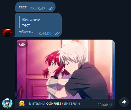 поцеловать(ответят все боты)ш поцеловать(ответит только шайбу)