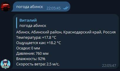 Как узнать погоду? Отправь команду и название города.